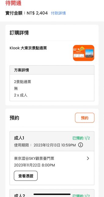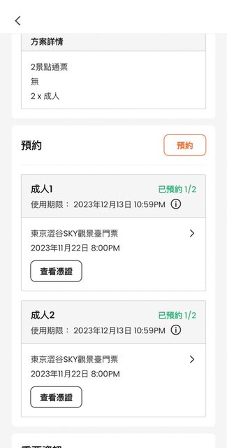 7. 其他說明:原本購買了Klook 兩景點通票,已經開通了澀谷sky兩張 時間是11/22 20: