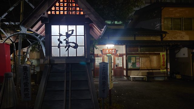 不過走到澀溫泉需要花半個小時,溫泉街的夜晚沒甚麼人氣,燈也很少有點恐怖,