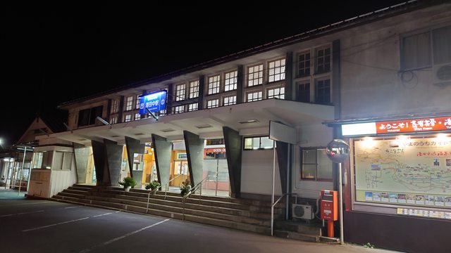 車站背面是舊車站,已經被改建成紀念館及公共溫泉澡堂楓之湯了,