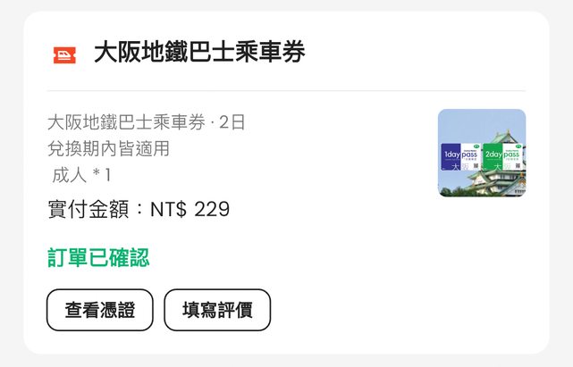 標題[讓售] 大阪地鐵巴士二日乘車券