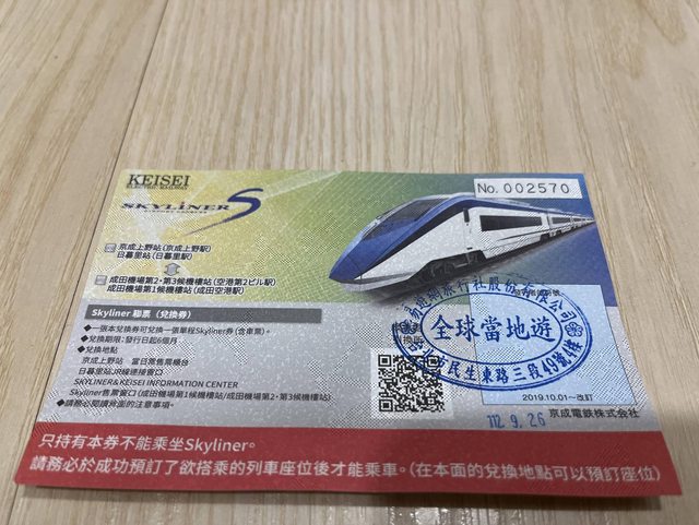 標題[讓售] 京城電鐵skyliner票券1張