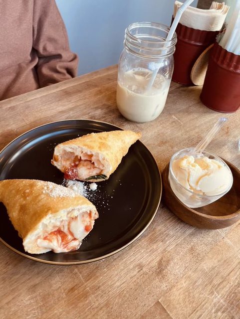 口感很像脆皮雞蛋糕,不會太甜,挺好吃的