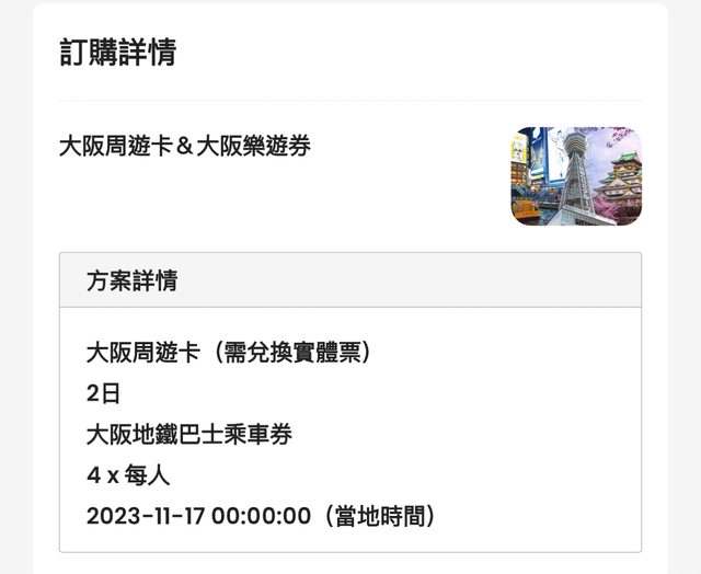 標題[讓售] 大阪周遊卡2日券*4