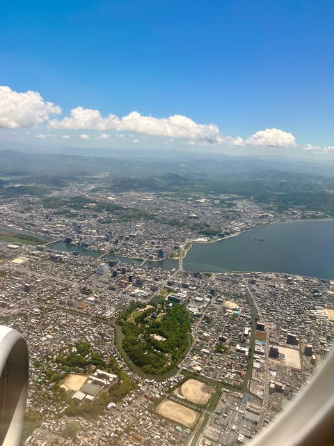 搭乘飛往出雲的國內航班,降落前就可從空中欣賞被河湖環繞的松江,以及威風凜凜的松