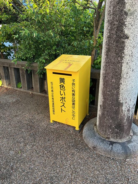 然後路邊偶爾會見到這樣的黃色郵筒。「黃色郵筒:請把對孩子有害的圖書丟進來 *請不
