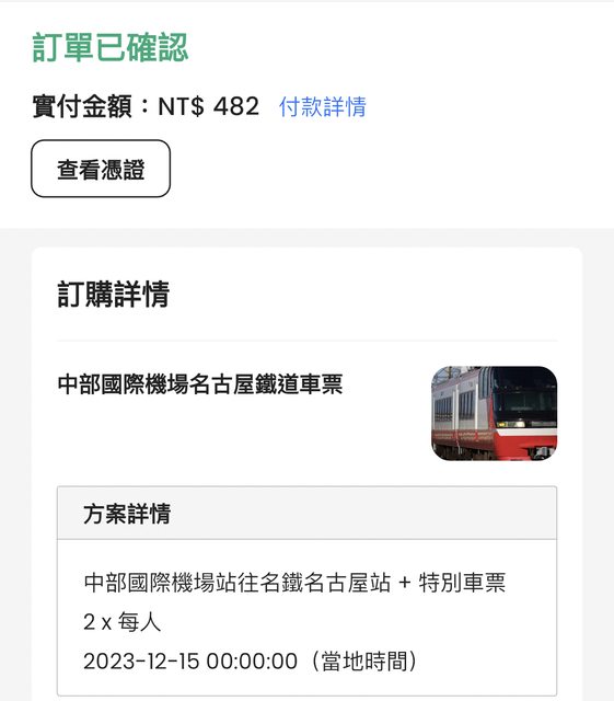 標題[讓售] 12/15中部國際機場名古屋鐵道車票+特別車