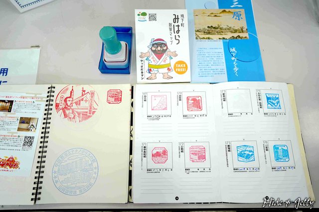 案內所內櫃台前,就可以看到三原城的印章了,印章角度是從天守台西北側的高角度構圖