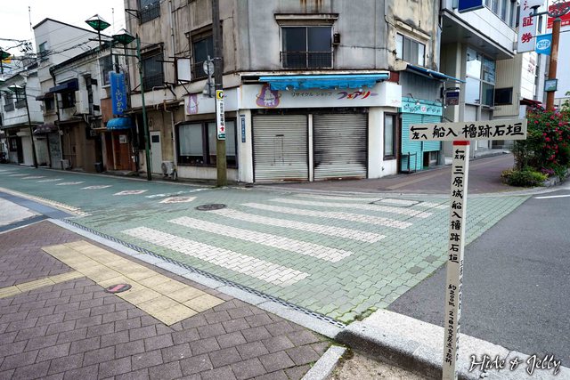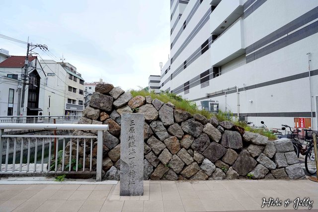 我們先從車站南口東南側的街道進入,路口有「三原城船入櫓跡入口」的石碑,很顯眼不