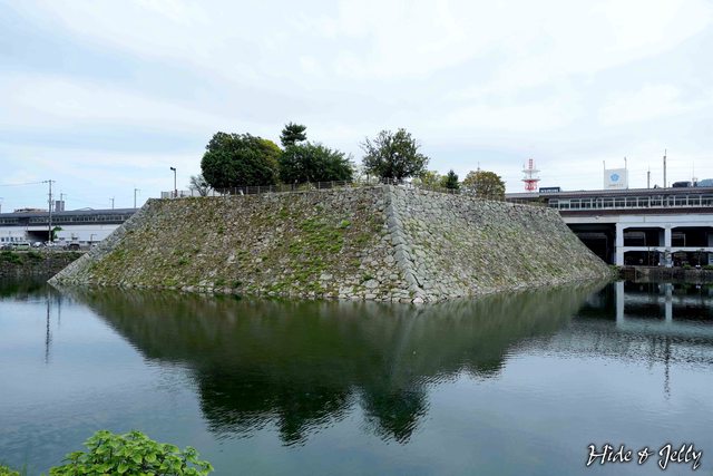 ,除了這一小段外,整段消失,也就是說,車站就是蓋在本丸的位置,大部分的石垣都已