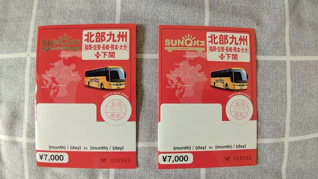 1. 讓售品項:北九州 SUNQ Pass 三日 2張