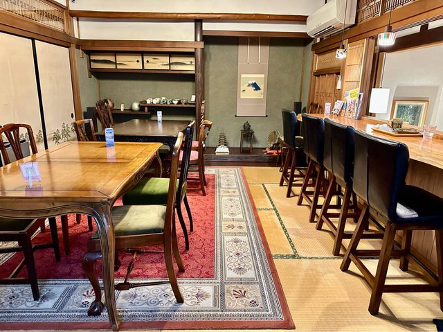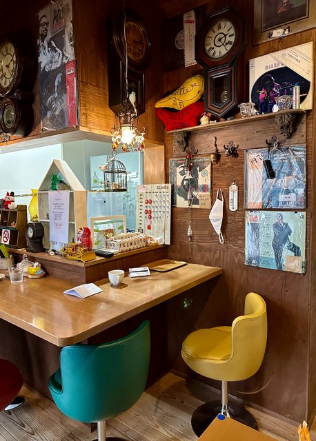 第三站-栗津溫泉 隨意挑選的景點,變成旅途意外的美好 一下車看著空蕩蕩的溫泉街 腦袋突然當機,不曉得該去哪裡殺時間 (當下離最近一班公車還有2.5小時的時間) GOOGLE MAP打開,發現一間營業中的咖啡廳 推開門的瞬間,老老闆和朋友正坐在吧檯聊天 與其說它是營業場所 感覺更像是招待好朋友的私人空間
