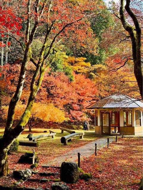 第一站-鶴仙溪 步道全長1.3公里,很輕鬆就能走完一圈 在溪邊川床上喝杯熱茶吃口點心 抬頭就是溪谷楓葉美景 川床初體驗非常滿意