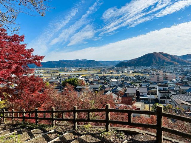 今日唯一景點留給西山公園 鯖江車站步行約15分鐘抵達 山坡上遠眺出去視野遼闊 公園內楓樹變色秋意濃厚