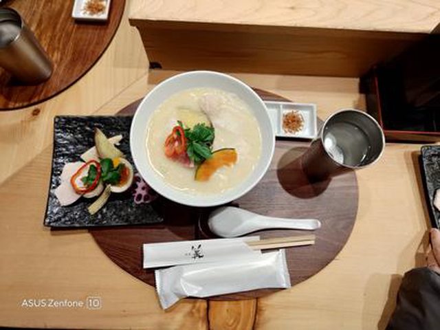 在銀座吃的拉麵,很幸運地排隊差不多5分鐘就入座,Q彈的拉麵沾附著濃郁的雞白湯,吃