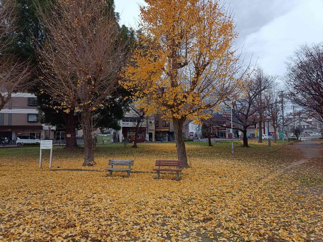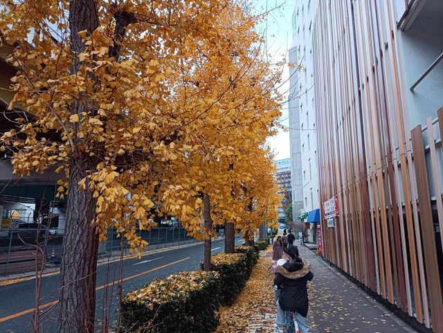 路上不少行道樹都是銀杏
