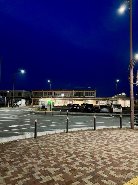 路上行車不多,可謂相當冷清。但是鎮上的生活機能尚稱良好,車站前就有藥妝店,稍微
