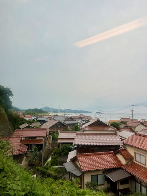 乘著特急列車,離開出雲,就進到石見地方了。沿著海岸線的小聚落,家家戶戶的屋頂都