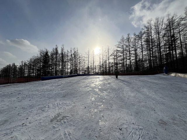 還是不甘願,剛好下午一點接駁車進場,我們直接上車前往雪場。