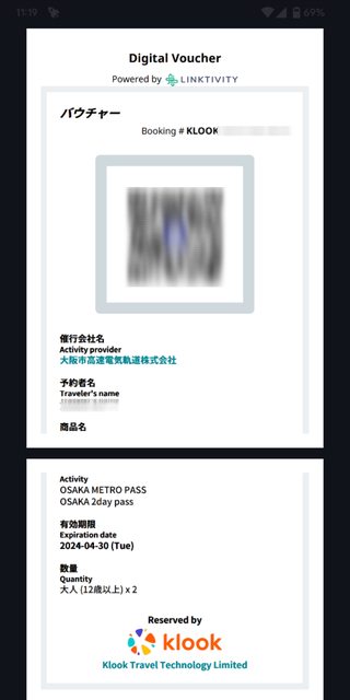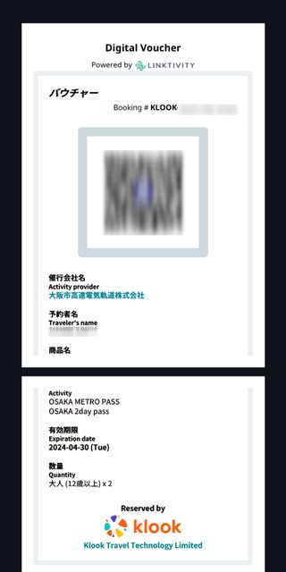 標題[讓售] 大阪地鐵巴士乘車券 2日券