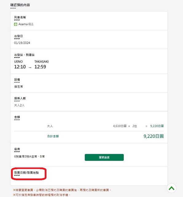 無須另付高崎-神保原在來線乘車費(紙本票要能開出來)