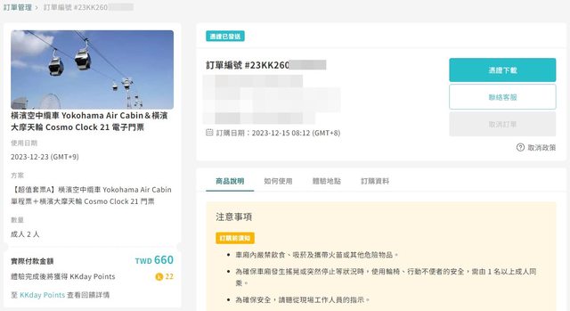 標題[讓售] 橫濱空中纜車&大摩天輪電子票