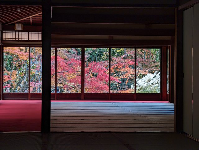 上近期比較熱門的應該還是書院從裡往外拍,以及從外面拍書院這兩個角度。紅葉期間,