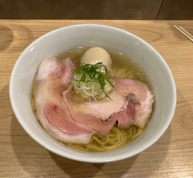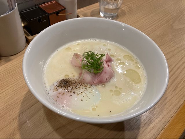 餐點品項:塩らぁめん+味玉 , 白トリュフオイル香る鶏白湯麺