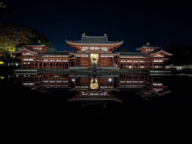 6 點進場後,先在側邊拍一張跟門票差不多角度的鳳凰堂與倒影,晚上真的是超美。
