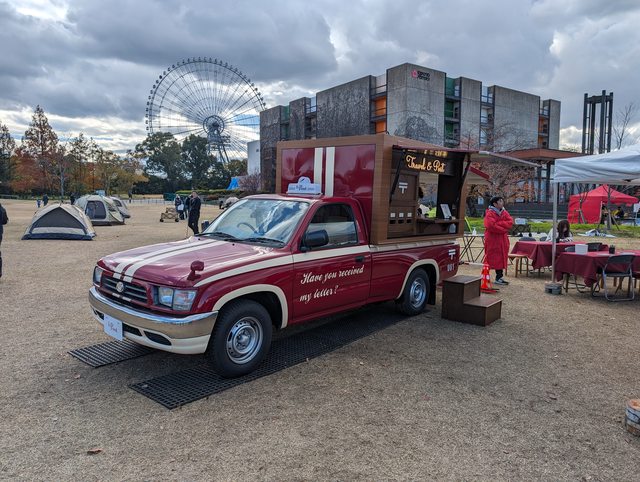 今天主要的行程是關西蚤之市,今年是在大阪的萬博公園舉辦。入場就會看到郵局的行動