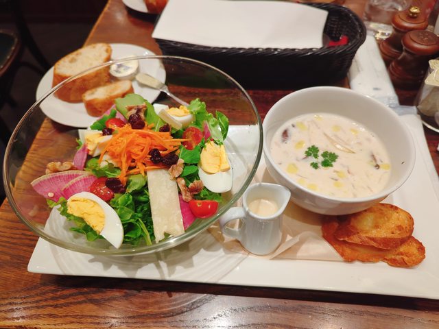 蘑菇湯與沙拉盤