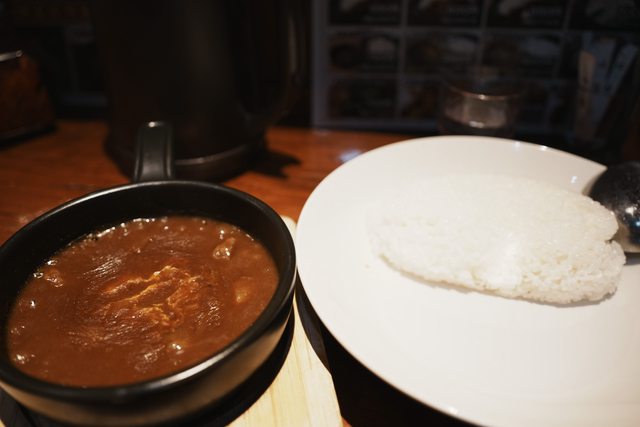 咖哩味道偏重鹹,隱約帶有種調理包的味道,牛肉塊也是小而少,虧你還要一千四百塊日