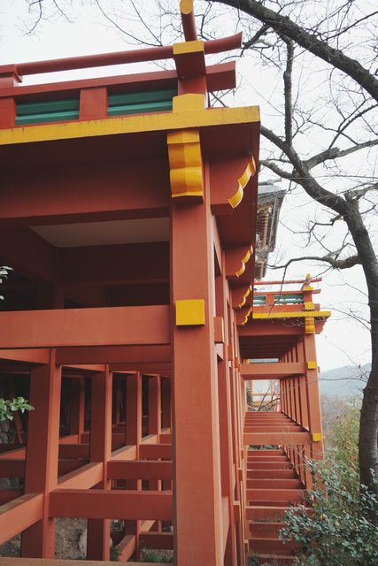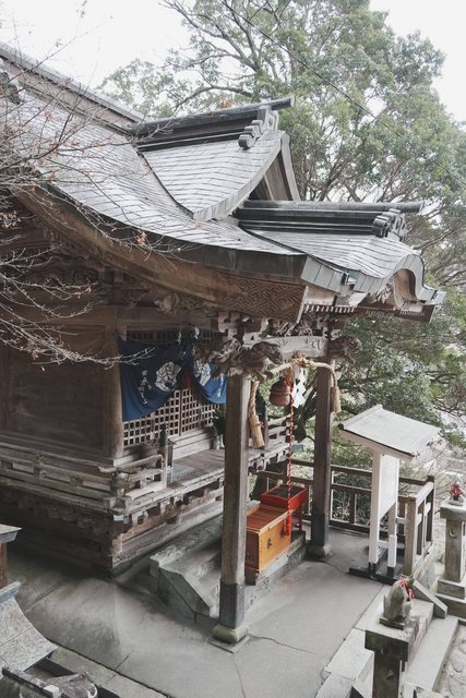 神社的拜殿跟本殿都建在高高的舞台上,其結構有點類似清水寺的清水舞台,相當雄偉壯
