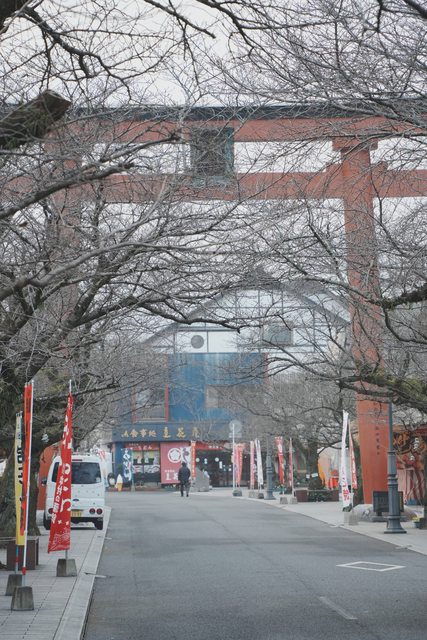 參道上的一之鳥居很壯觀,兩旁的櫻花樹在春季時期,應該會吸引不少人賞櫻
