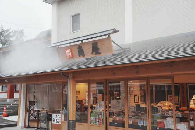 祐德名產的爆竹羊羹,一個三百日幣,其實也不一定要在本店買,往後走的商店街每家都