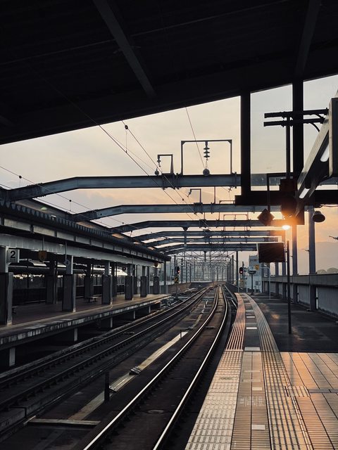 回車站等車時,在月台拍到了很不錯的夕陽