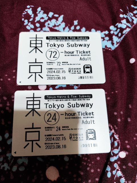 標題[讓售]東京地鐵一日券24HR及三日券72HR各1張