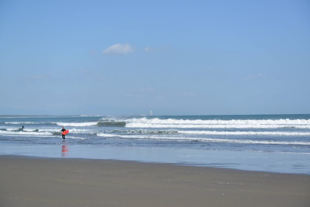 人在衝浪,這裡也有青島溫泉,泡湯眺望太平洋