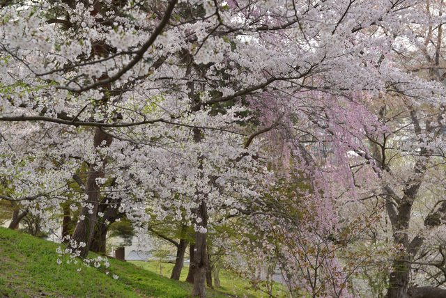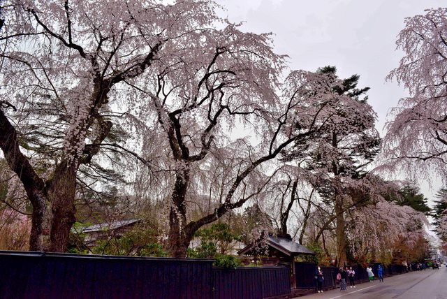 到角館後,仍然下雨,但雨勢漸緩,然後變成陰天,終於可以拍櫻花。