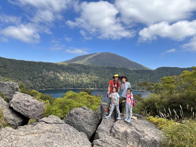 13.霧島最高峰,日本百名山之一的韓國岳,也是一個超大火山口,5歲的小女兒走到