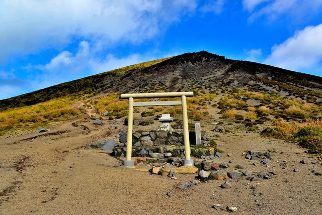 發後,就往下遷移,不過在那麼高的地方,要參拜也是蠻困難的。小孩很厲害,火山地形
