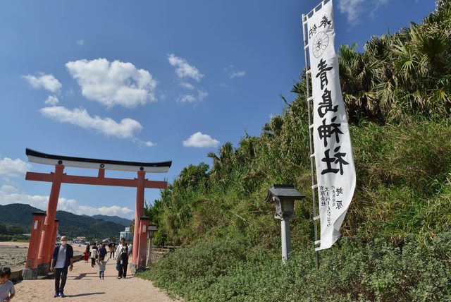 56. 青島神社,觀光客很多的地方,島上的沙灘是貝殼做成的,海岸的地形也很奇特