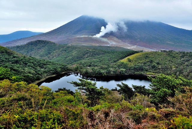 20.霧島火山群之一的硫磺山,近期在噴發,周圍的步道就不能進去,包含不動池及