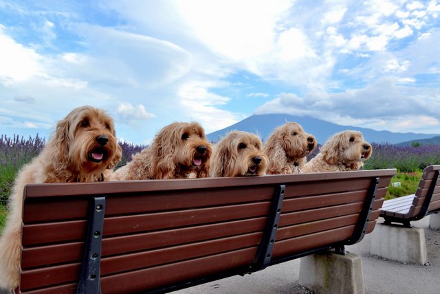 1.河口湖的大石公園,剛好遇到5隻大狗,狗主人們也讓我拍喔
