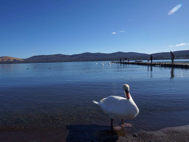 晃到了一個有賣天鵝飼料的地方,很多人在餵天鵝