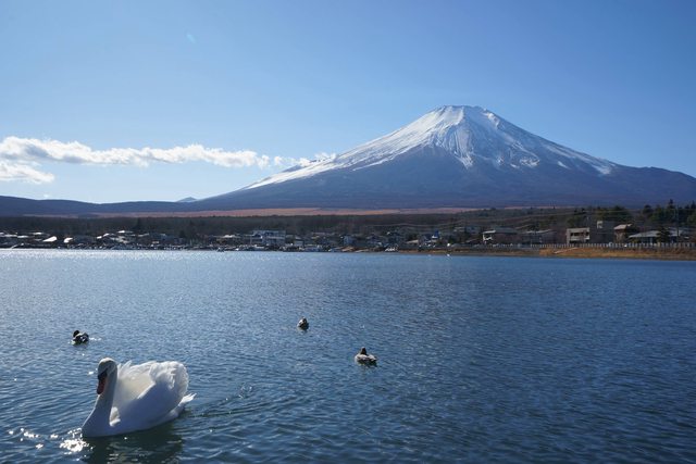 昨晚住山中湖的富士山大飯店,房間內可以直接看到山中湖及富士山,戶外風呂晚上可以看星星,早上可以看富士山。飯店位在半山腰,路面如果結冰開車需要小心。外有個森林小徑可以散步。