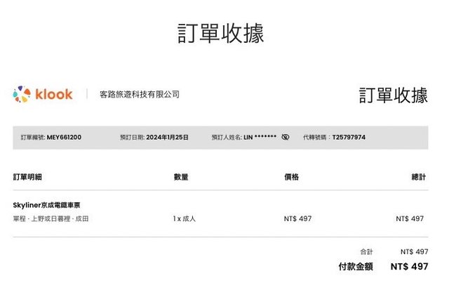 klook skyliner日暮里・上野→成田機場