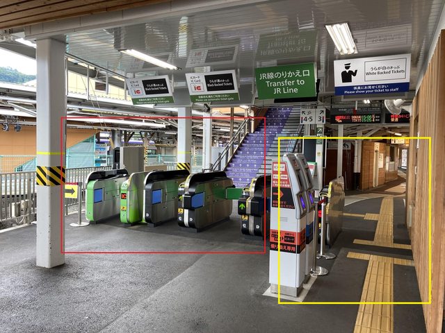 在河口湖站人工窗口買河口湖到品川的乘車券及大月到新宿的特急券,走黃框人工出口