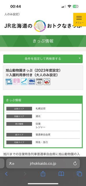 行前在查詢交通方案時,發現JR旭山動物園套票的資訊大部分都已經是疫情前,JR中文的網