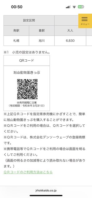 由於官網上有購票的QRcode,所以我是19日傍晚出發前才用自動售票機買票,直接在JR札幌