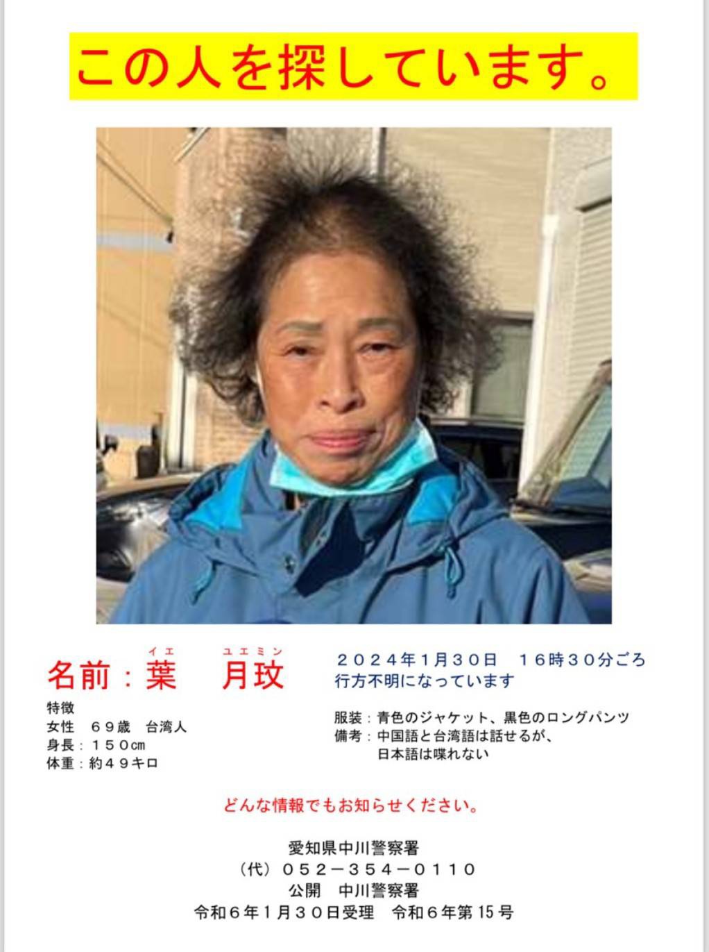 推 winnie759281: 失蹤者的女兒住日本,是探親沒錯,有輕微失智 01/31 12:58